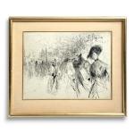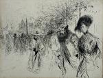 ECOLE FRANCAISE du XXème Personnages Encre 23 x 29.5 cm à vue (piqûres)