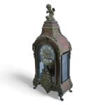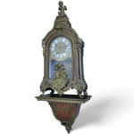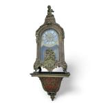 CARTEL D'APPLIQUE et sa CONSOLE en bronze et marqueterie Boulle de laiton et écaille rouge, le cadran à plaques émaillées Style Louis XIV H. totale: 84 cm