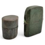 Deux ECRINS vides gainés de galuchat XIXème H.: 4.7 et 7.5 cm (accidents)