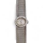 MONTRE DE DAME en or gris la lunette est sertie de petits diamants poids brut 33 g long bracelet 17 cm