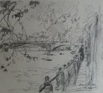 Paul Emile LECOMTE (1877-1950) Nantes, les ponts de Loire Dessin signé et situé en bas à droite 25.5 x 26 cm