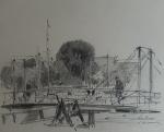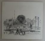 Paul Emile LECOMTE (1877-1950) La Rochelle, la passerelle Dessin signé et situé en bas à droite 25.5 x 28 cm