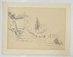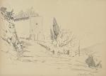 Paul Emile LECOMTE (1877-1950) En montant vers le village Dessin signé en bas à droite 22.1 x 31 cm (piqûres)