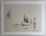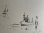 Paul Emile LECOMTE (1877-1950) Etude de personnages avec barque et voilier Dessin signé en bas à droite 22.5 x 30.3 cm (piqûres)