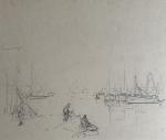 Paul Emile LECOMTE (1877-1950) Sur les quais Dessin 25.3 x 27.5 cm (traces d'humidité)