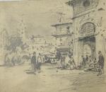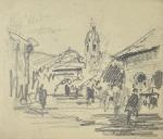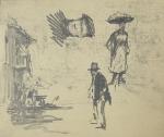 Paul Emile LECOMTE (1877-1950) Scènes animées et études Quatre dessins sur un même carton 12 x 28 cm hors tout