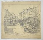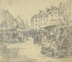 Paul Emile LECOMTE (1877-1950) Scène de marché Dessin avec mise aux carreaux 26.5 x 28.5 cm (piqûres, traces d'humidité)
