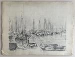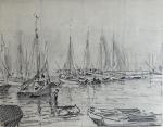 Paul Emile LECOMTE (1877-1950) Barques au port Dessin mis au carreau 26.5 x 35.5 cm
