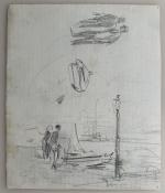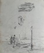 Paul Emile LECOMTE (1877-1950) En descendant sur la cale Dessin double face 23 x 19 cm
