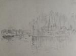 Paul Emile LECOMTE (1877-1950) Village au bord de l'eau Dessin 13 x 17.5 cm (légères piqûres)