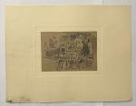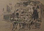 Paul Emile LECOMTE (1877-1950) Etal de marché Dessin rehaussé 11.3 x 15.8 cm