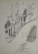 Paul Emile LECOMTE (1877-1950) Dans l'escalier Dessin 15 x 10.5 cm