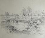 Paul Emile LECOMTE (1877-1950) Oulins, la rivière Dessin signé et situé en bas à droite 25.6 x 28.1 cm (légères piqûres)
