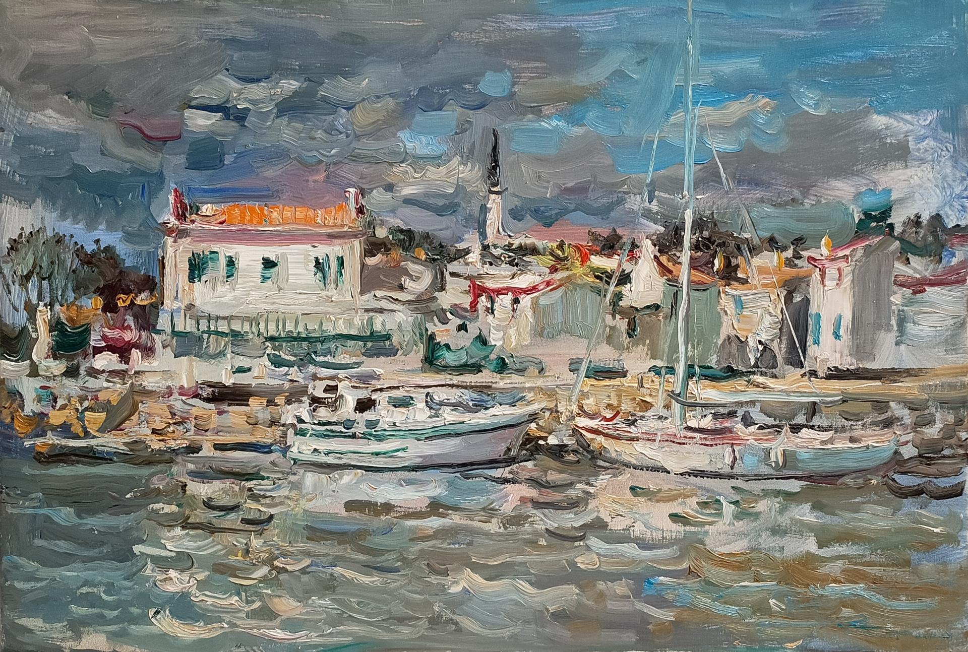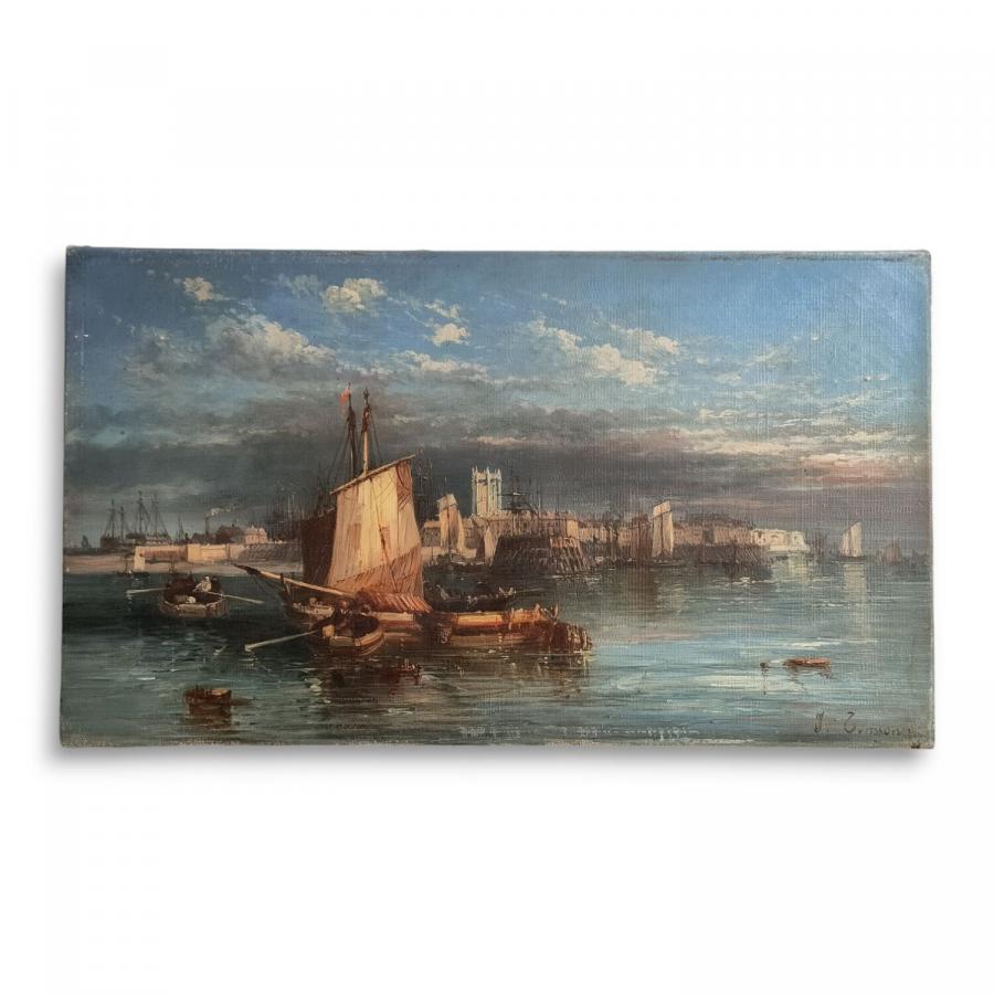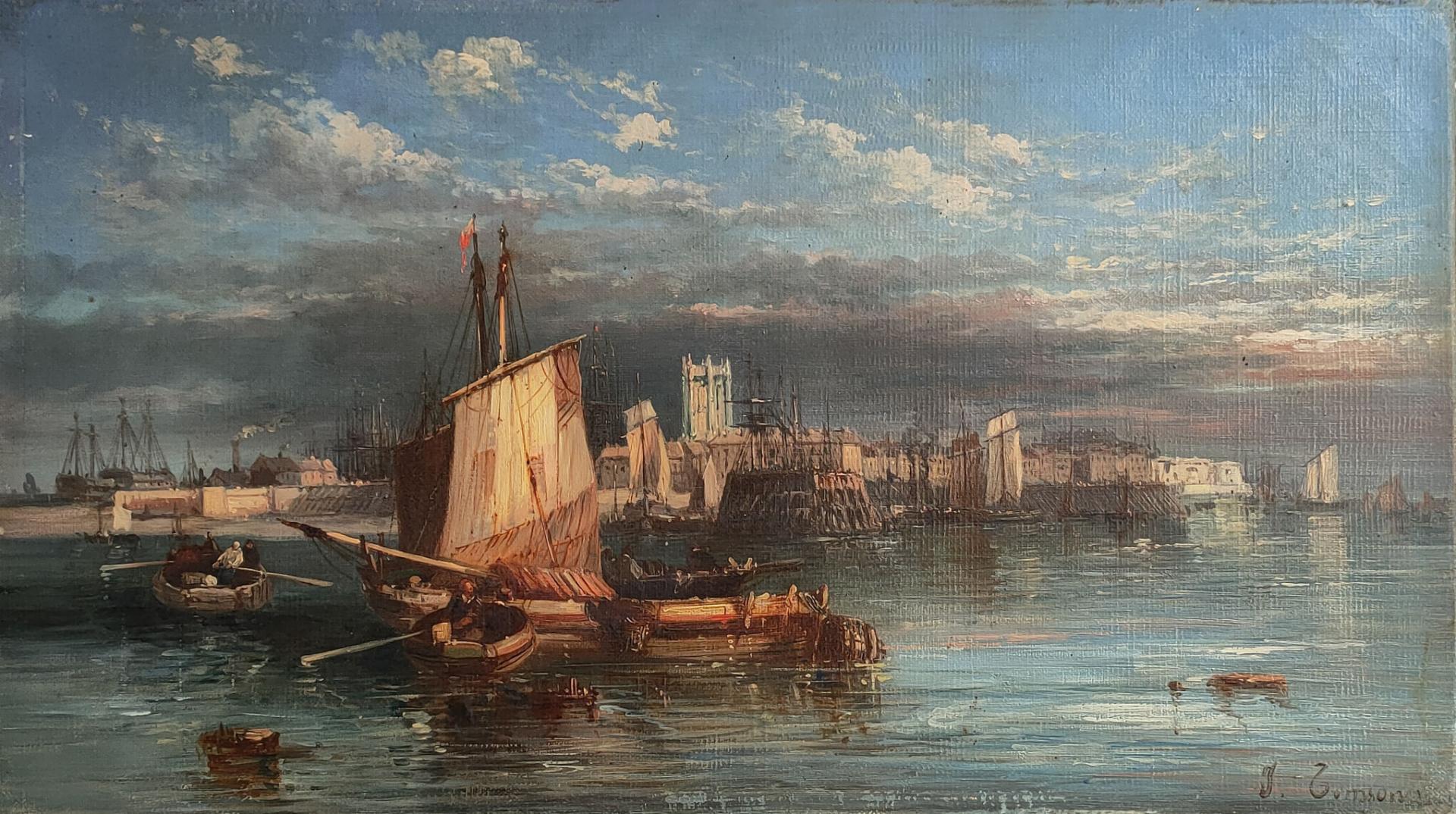 J. TOMSONN (XIX-XXème) Fécamp, le port Huile sur toile signée en bas à droite 28 x 49 cm