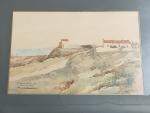 ECOLE FRANCAISE début XXème Noirmoutier, L'Herbaudière, 1922. Aquarelle signée, située et datée en bas à gauche 19.5 x 30 cm (traces d'humidité)