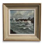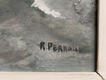 R. PERRAUD (XXème) Marine Huile sur panneau signée en bas à droite 19 x 19 cm à vue