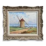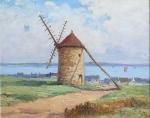 Emile GAUFFRIAUD (1877-1957) Bretagne, le moulin devant la mer, 1924. Huile sur carton signée et datée en bas à droite 33 x 41 cm