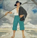 Marcel JACQUIER (1877-1957) Paludier à Batz Huile sur panneau signée en bas à droite 26.5 x 28.5 cm