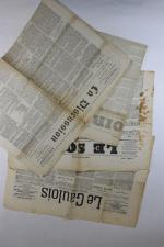 4 Journaux période de la Commune de Paris. "Le Soir" du 31 mars 1871 et du 20 mai 1871. "La Discussion" du 14 mai 1871. "Le Gaulois" du 23 mai 1871.
