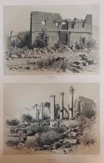 [Atlas] REY (Guillaume M. E.). Voyage dans le HAOURAN et aux bords de la Mer Morte, exécuté pendant les années 1857 et 1858 ATLAS - Paris, Bertrand, vers 1861. In-plano, demi reliure du temps. Cachet de bibliothèque effacé. Edition originale de ce bel atlas avec 26 planches dont 19 lithographies à deux teintes, certaines montrant 2 vues. Très rare.