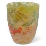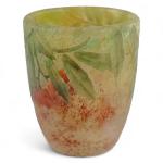 DAUM # Nancy Vase gobelet miniature en verre multicouche à décor dégagé à l'acide de branches et fruits, signé dans le décor H.: 5 cm