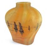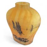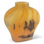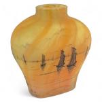 DAUM # Nancy Vase miniature en verre multicouche à décor d'un paysage maritime avec voiliers, signé au-dessous H.: 4.2 cm