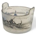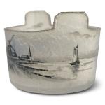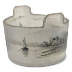 DAUM # Nancy Vase ou coupe ronde miniature en verre à décor émaillé d'un paysage maritime, signé au-dessous H.: 3.3 cm D.: 4.4 cm
