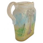 DAUM # Nancy Pichet en verre multicouche à décor dégagé à l'acide de datura avec filets or, l'anse appliquée, signé au-dessous H.: 12.5 cm
