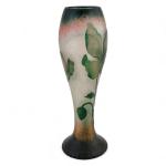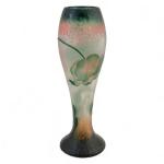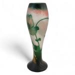 DAUM # Nancy Vase en verre multicouche à décor martelé et gravé à l'acide de fleurs, signé au-dessous H.: 22.3 cm
