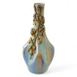 MASSIER Vase en grès émaillé, la monture en bronze doré représentant une branche fleurie H.: 11.2 cm