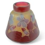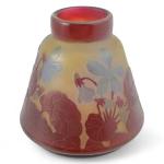 GALLE Fushias Vase en verre multicouche à décor dégagé à l'acide, signé H.: 9.5 cm