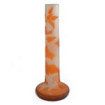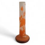 GALLE Vase en verre multicouche à décor dégagé à l'acide de fleurs, de forme tubulaire reposant sur une base aplatie, signé H.: 33 cm (quelques frottements)