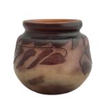 GALLE Vase en verre multicouche à décor dégagé à l'acide de fleurs et feuillage, signature à l'étoile H.: 12 cm
