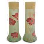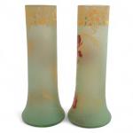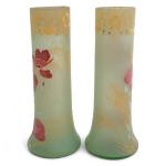 ART NOUVEAU Paire de vases en verre teinté à décor floral émaillé et peint H.: 35.5 cm