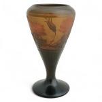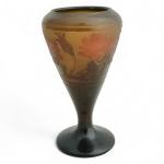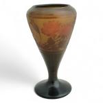 D'ARGENTAL Vase conique en verre multicouche à décor floral dégagé à l'acide, signé et Croix de Lorraine Circa 1900 H.: 17 cm