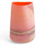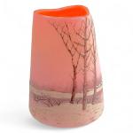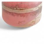 LEGRAS Vase en verre à décor sur fond rose d'un paysage à la neige, signé H.: 14.5 cm