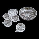 SAINT LOUIS Service en cristal comprenant une jatte ronde et six coupelles à fruits avec prise, certaines signées de la pastille ronde D.: 9.5 et 23 cm (égrenure)