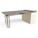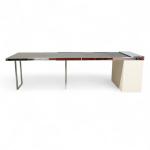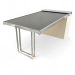 Bois laqué, acier chromé, le plateau extensible à support déroulant coulissant sur glissières à encadrement métallique et revêtement en caoutchouc