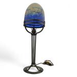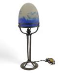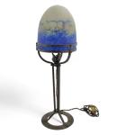 DEGUE Lampe de forme champignon en verre marmoréen et fer forgé, signée Epoque Art Déco H.: 62 cm