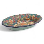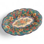 LONGWY Corbeille ovale en faïence à décor polychrome de fleurs dans une réserve H.: 6.5 cm L.: 34.5 cm l.: 22.5 cm