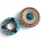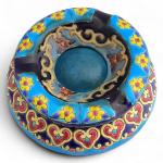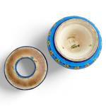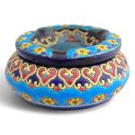 LONGWY Cendrier couvert en faïence à décor polychrome de fleurs H.: 5.8 cm D.: 13.5 cm (restaurations)