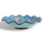 LONGWY Coupe ronde en faïence à décorp olychrome de lfeurs, l'aile mouvementée H.: 6 cm D.: 24 cm