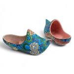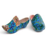 LONGWY Paire de souliers en faïence à décor polychrome de fleurs L.: 15 cm