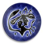 Jean LURÇAT (1892-1966) à Saint Vicens Personnage Assiette ronde en faïence émaillée, signée et située au revers Années 1950-60 D.: 21.5 cm