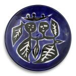 Jean LURÇAT (1892-1966) à Saint Vicens Personnage Assiette ronde en faïence émaillée, signée et située au revers Années 1950-60 D.: 21.5 cm (léger éclat au talon)