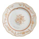 CHINE Compagnie des Indes Assiette ronde en porcelaine à décor or de fleurs et fers de lance, le sommet très probablement gratté d'anciennes armoiries XVIIIème D.: 25.6 cm (sauts d'émail)