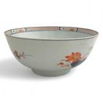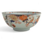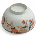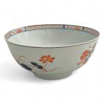CHINE Bol à punch en porcelaine à décor Imari XIXème H.: 12.7 cm D.: 28.3 cm (éclats)