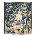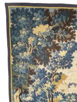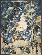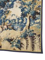 AUBUSSON Tapisserie à décor de la Fable "Le renard et le corbeau" de Jean de la Fontaine XVIIIème 206 x 172 cm (fragment, restaurations ,accidents, doublée)