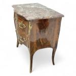 COMMODE D'ENTRE DEUX en bois de placage, ouvrant à deux tiroirs en ceinture, estampillée LARDIN et poinçon de jurande JME, dessus de marbre