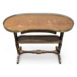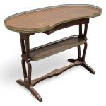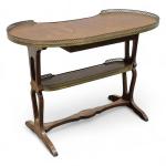Table à écrire en acajou et acajou moucheté, à deux plateaux à galerie ajourée et une entretoise, un tiroir en ceinture, signé